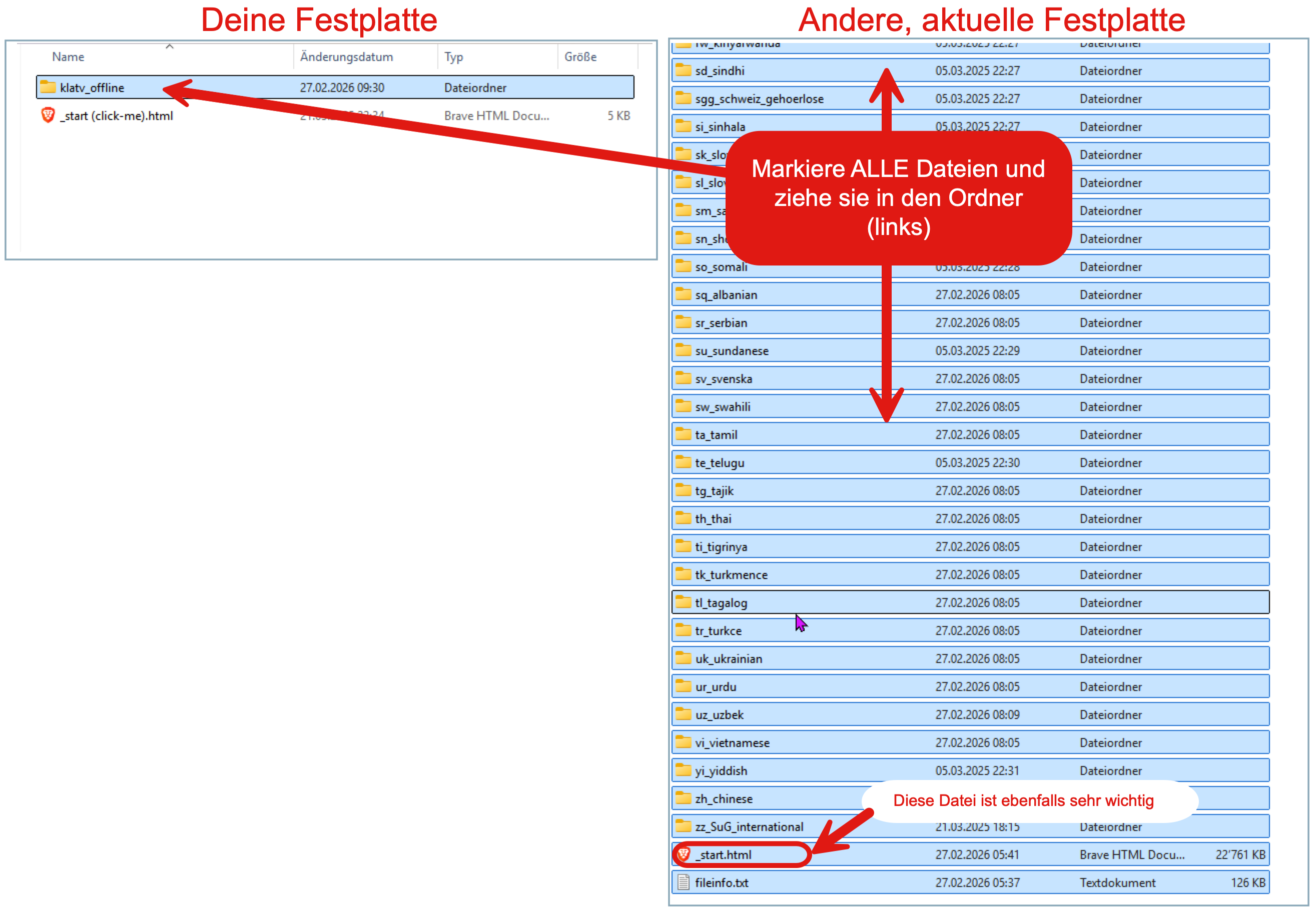 „KlaTV-Offline” aktuell halten, indem man es von einer anderen aktuellen Festplatte kopiert