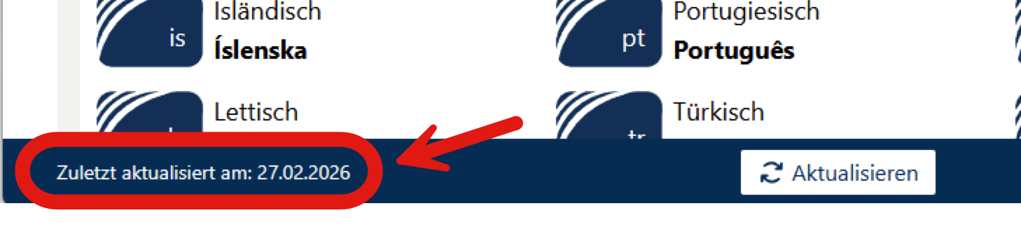 Die KlaTV-Webseite öffnet sich. In der untersten Leiste steht das Datum der letzten Aktualisierung: