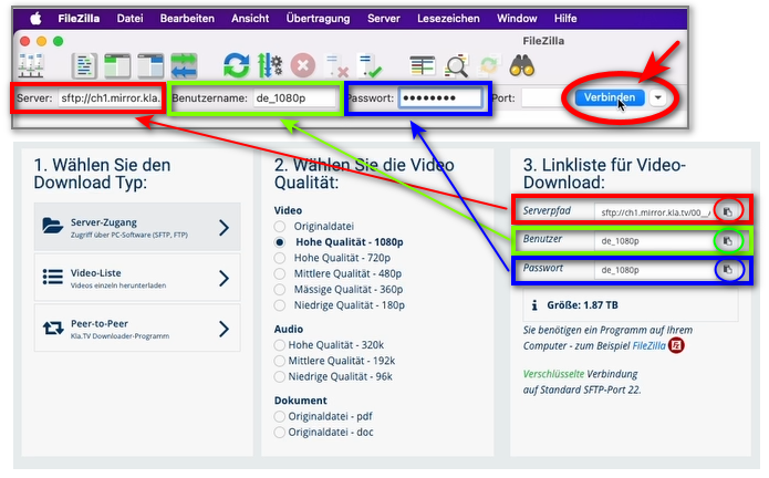 KlaTV sichern per Server-Zugang - Installation & Verbindung mit Filezilla (MAC)